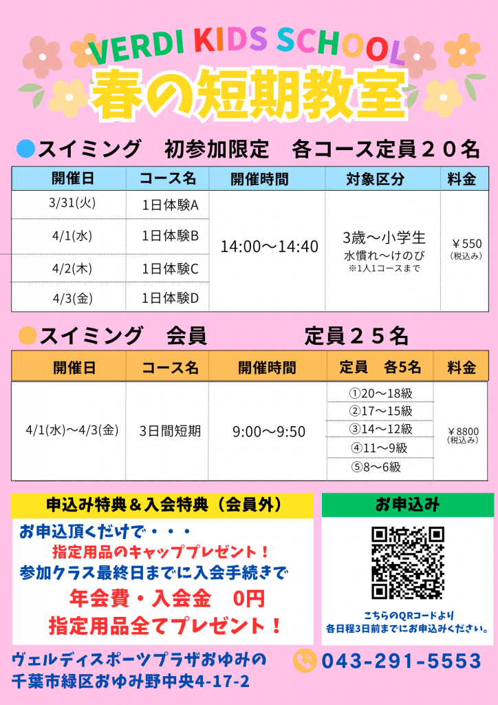 > スイミング春休み短期教室